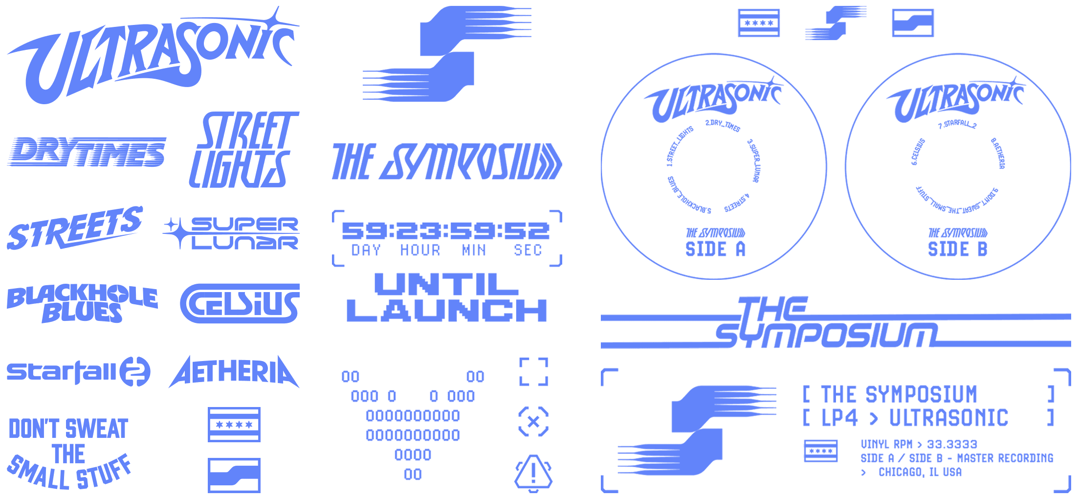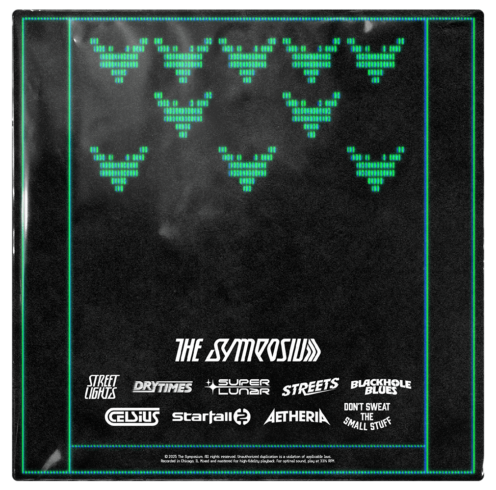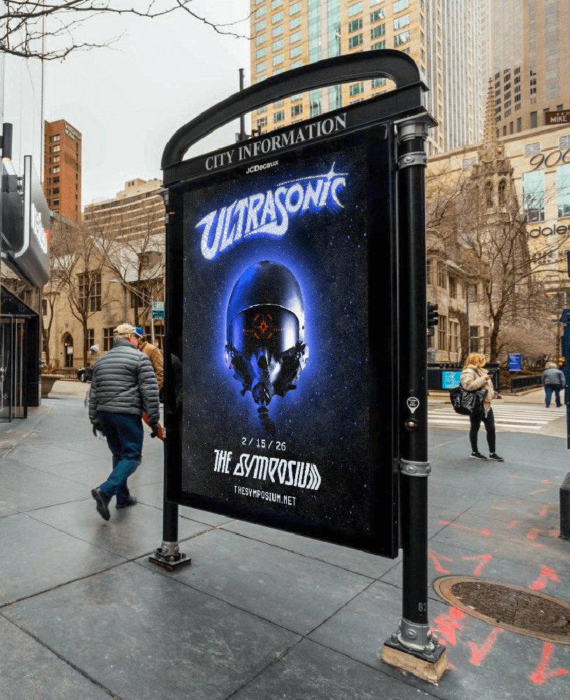 The Symposium is an indie rock band active since 2013 from Chicago, Illinois. Last summer, they did their first headlining tour across the USA. The tour was a success, but the band was missing out on opportunities to grow and strengthen their fanbase. With a new record on the way, I combined their design needs for the new album cycle and missed marketing opportunities into one project. The branding for the new record, Ultrasonic, leans further into the sci-fi themes the band has already been building upon in their music and visuals, which helps them stand out in an increasingly saturated indie scene. The typography, logo work, vinyl pressings, website, merchandise, marketing, and social media content all build on the world of Ultrasonic. This worldbuilding and visual storytelling play a crucial role in connecting with their target audience. The increased marketing exposure will bring in new fans, and the exclusive merchandise and engaging content will reward their dedicated fans for their support.